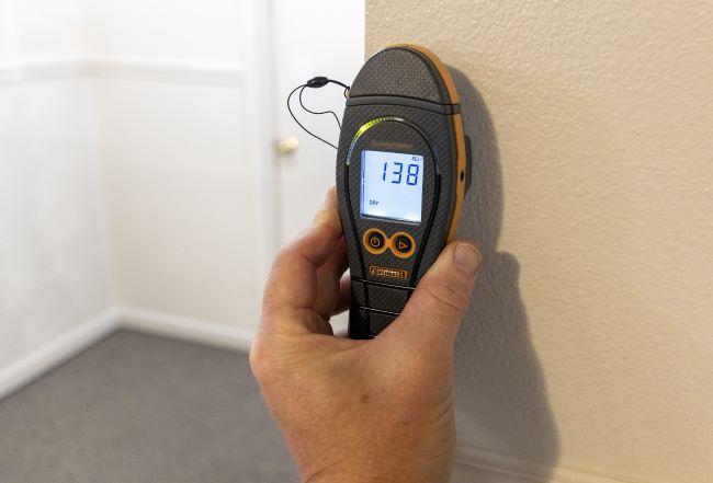 To establish a dry standard, use moisture meters to obtain readings from the same material in a nearby dry, unaffected area. Each different type of material will have a different dry standard, requiring separate readings for each. Wood, tile, drywall, and carpet will each have a distinct dry standard.